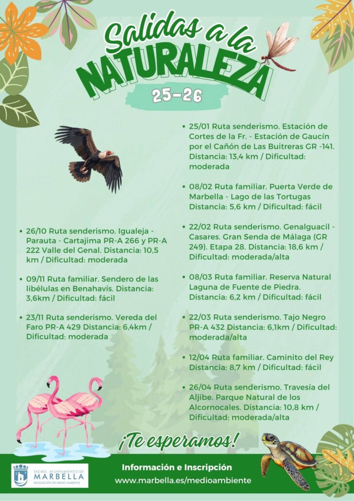 El Ayuntamiento de Marbella en su apuesta por la educación ambiental ha programado para la edición de 2025/26 del programa ‘Salidas a la Naturaleza’ un total de 10 rutas gratuitas por espacios protegidos, en las que participarán 500 personas.