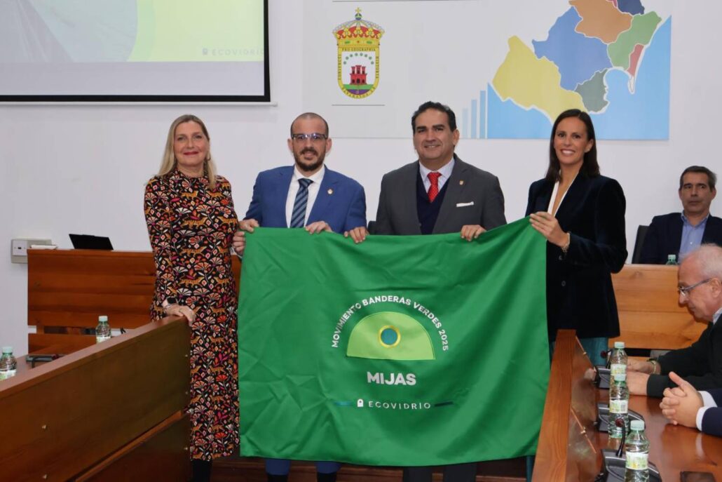 El Ayuntamiento de Mijas ha recogido oficialmente la Bandera Verde de Ecovidrio, tras convertirse este verano en el municipio con la mayor puntuación jamás obtenida en España dentro del Movimiento Banderas Verdes.